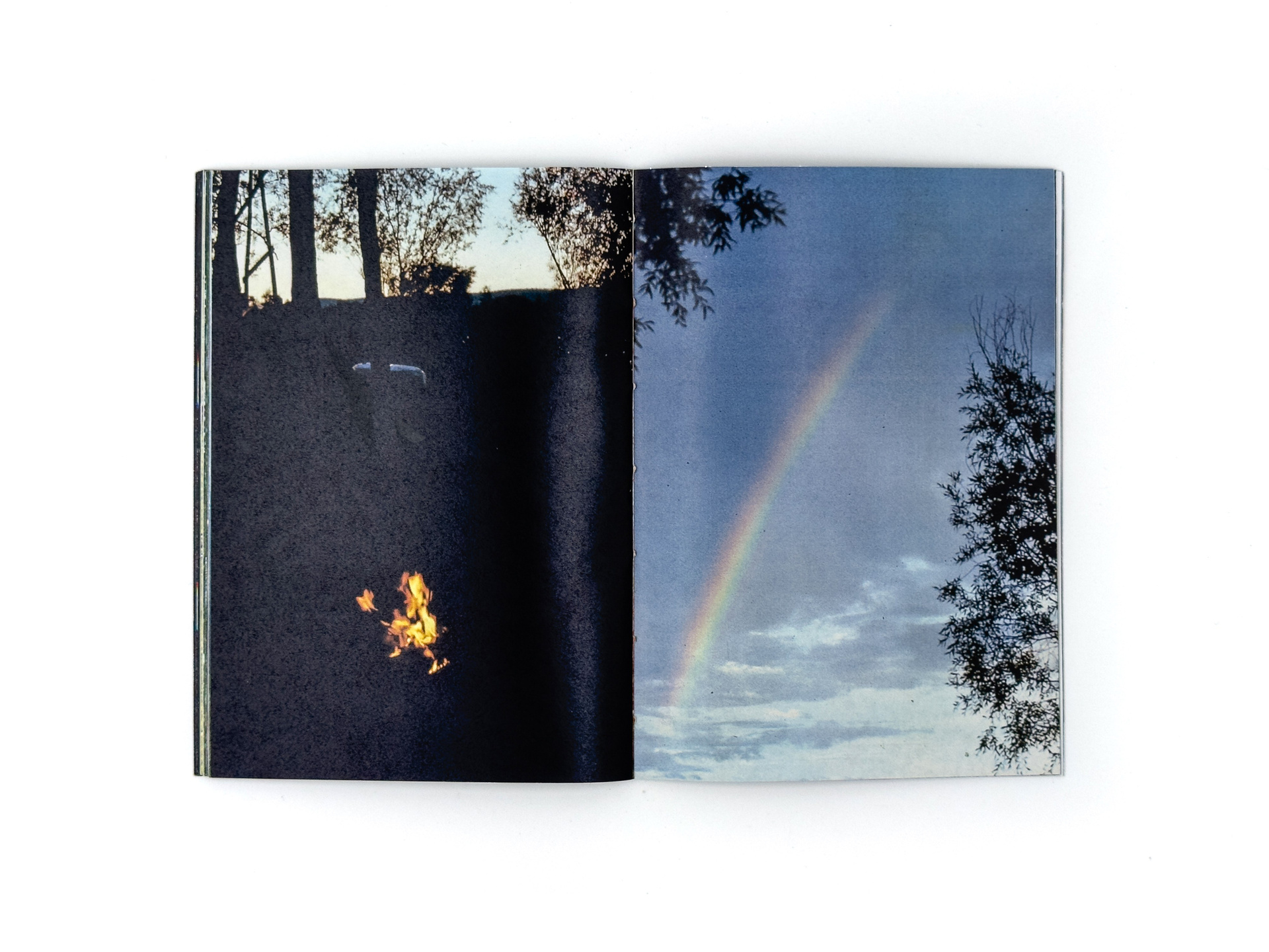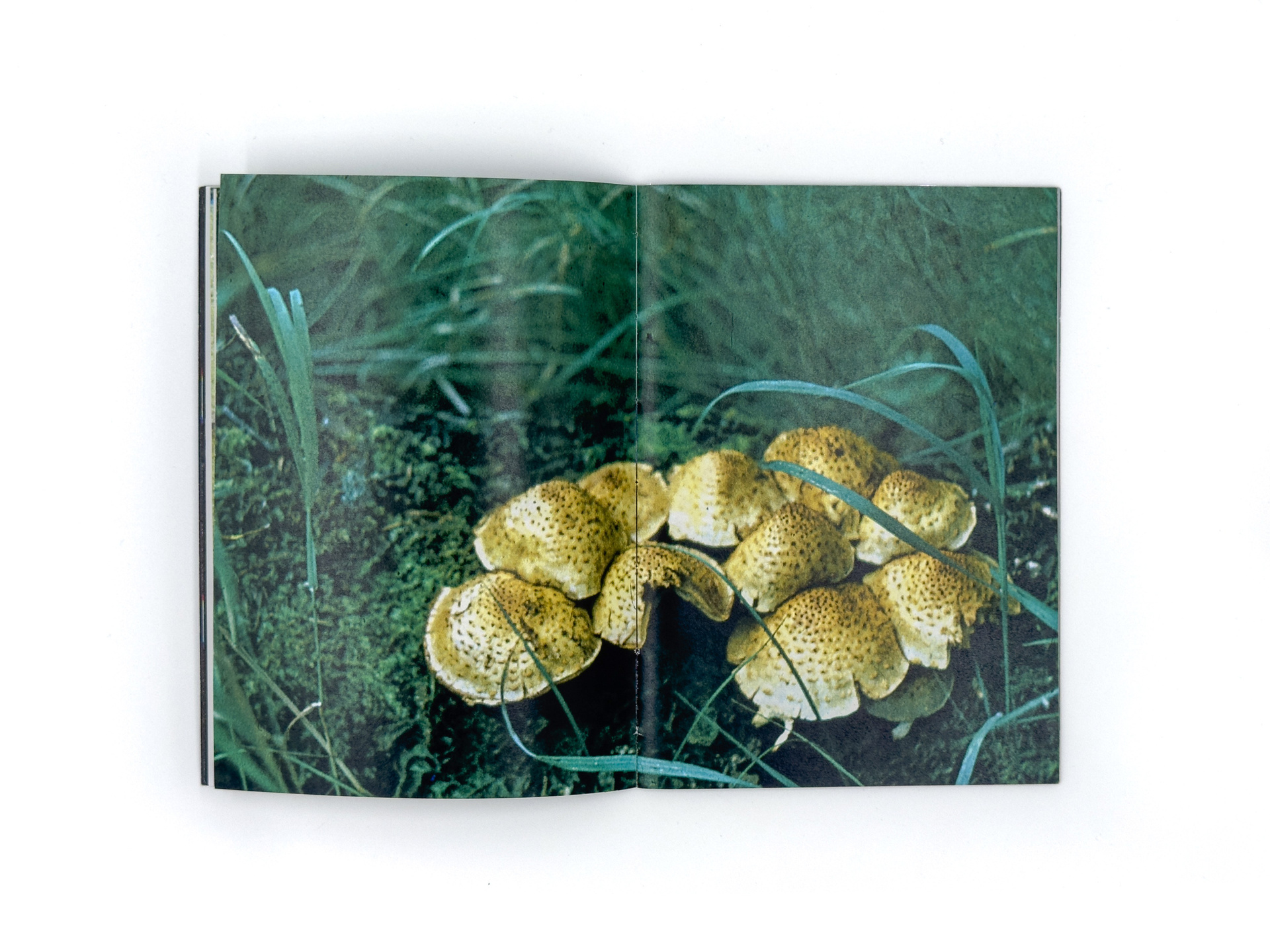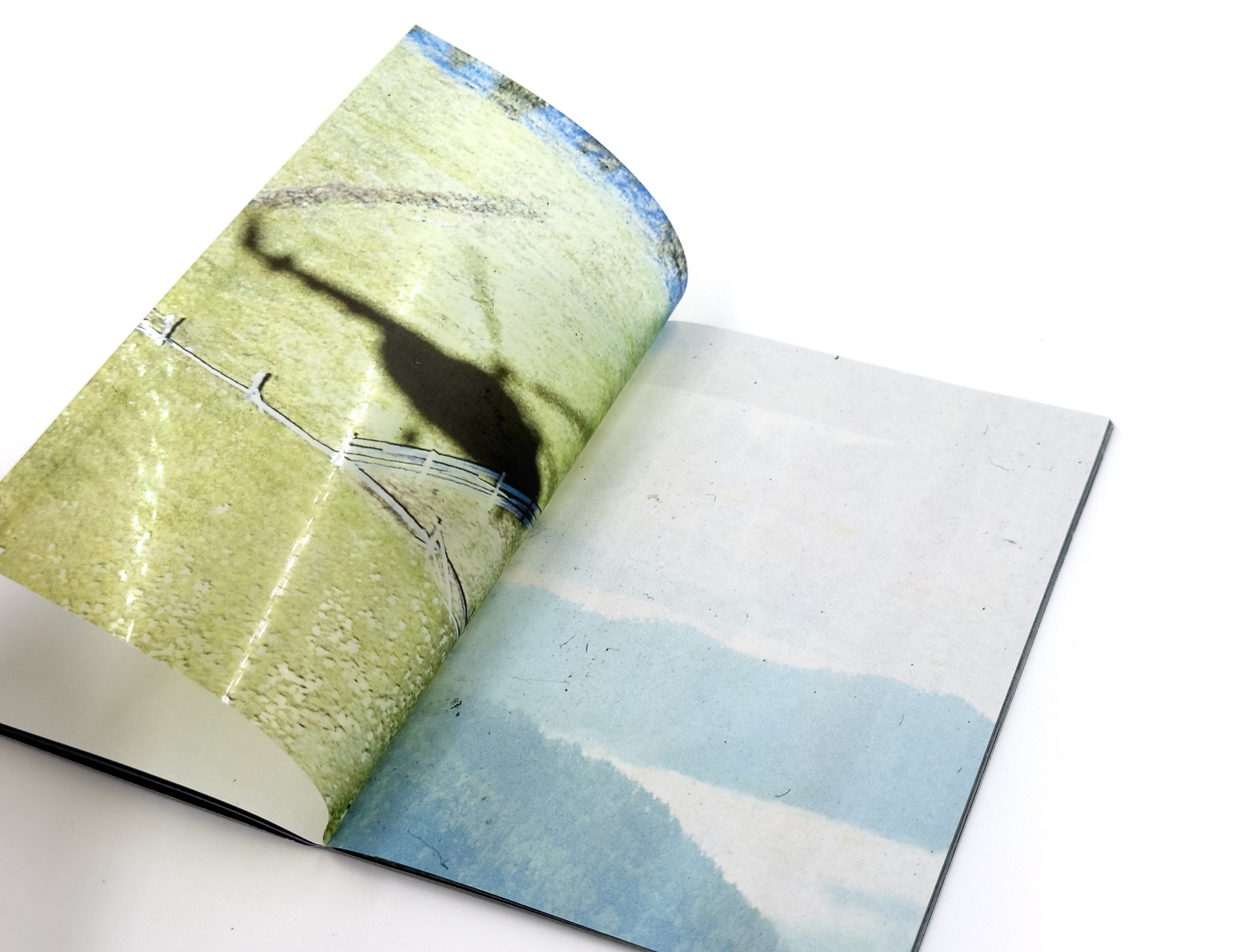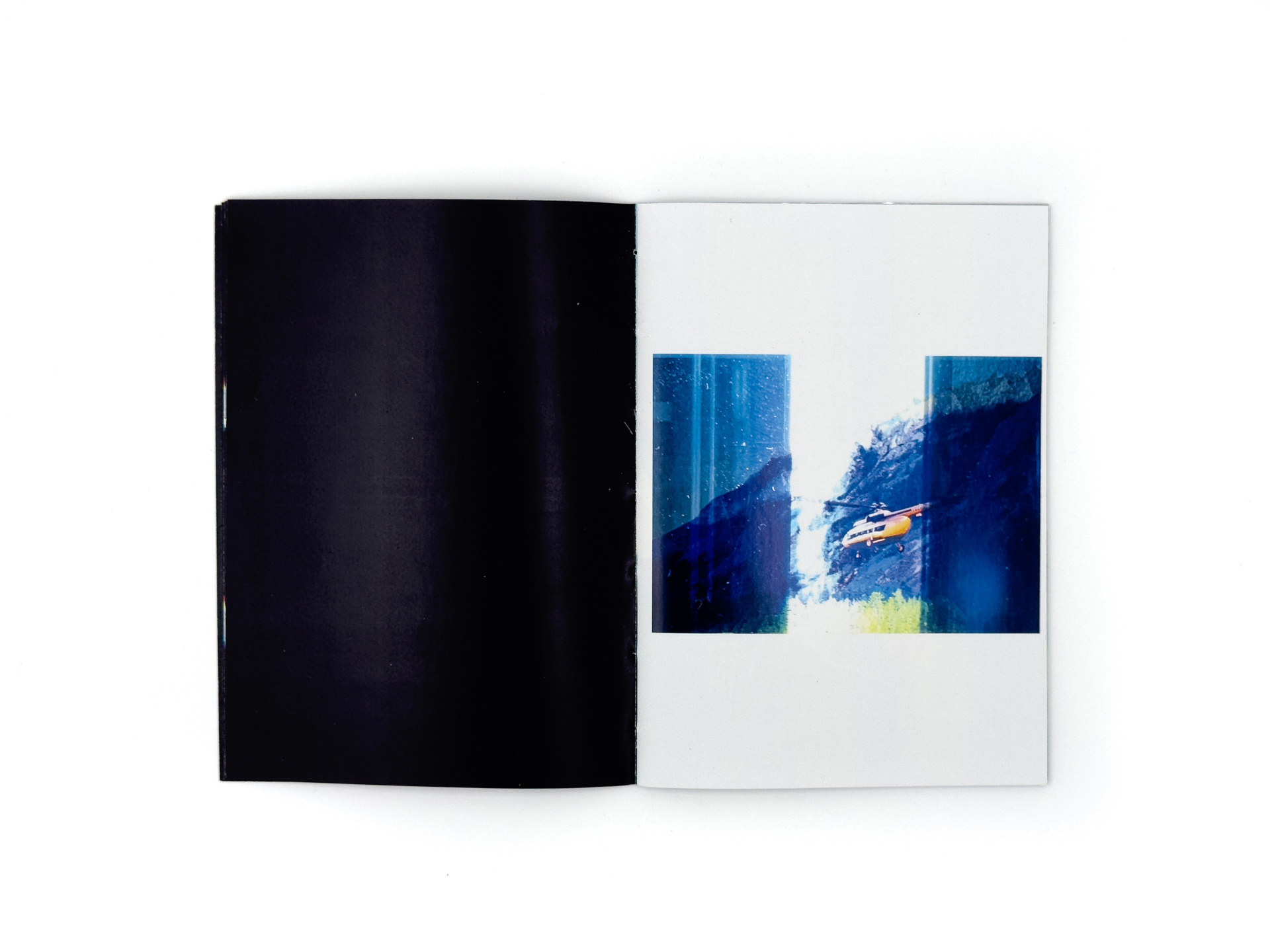 Я добавляю к слайдам новый визуальный слой — сканирую, размываю, превращаю в абстрактные изображения, напоминающие горные хребты. Сканография разрушает документальный статус фотографии и высвечивает её неопределённость. В зине это различие становится осязаемым: снаружи — плотная глянцевая бумага со сканографиями, внутри — тонкая хрупкая бумага с архивными снимками, а между ними прозрачная плёнка, требующая взгляда «сквозь», словно на диапозитив.