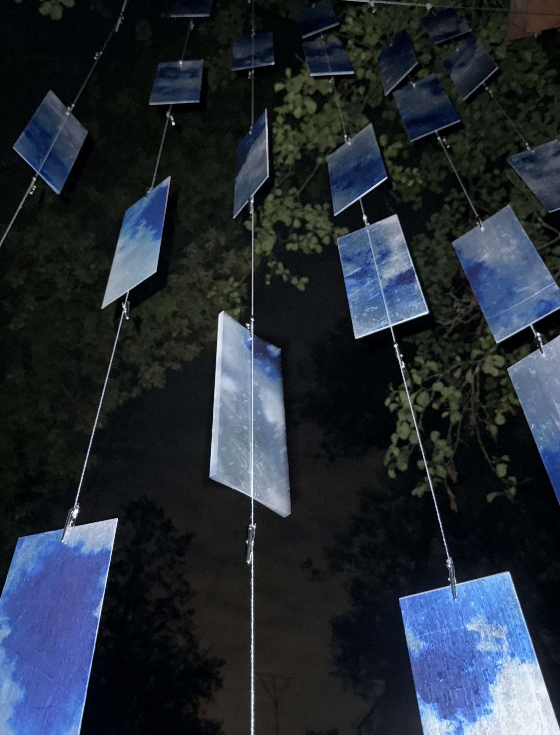 «Образ дома на ветру сегодня становится очень знаковым и аффектирующим, тревожным и одновременно полным надежд. Сегодня мы, кураторы проекта — Женя Стерлягова и Женя Шарвина, остро чувствуем, как может дом трепетать под порывами ветра. Дом на ветру, свой или наш общий — метафора неустойчивости, однако контур, не защищенный от ветра, в тоже время начертан. Это одновременно про защиту и проницаемость, про возможность быть унесенным ураганом, про портал, через который попадаешь в другую реальность, и конечно про само пространство в Белых аллеях, с его камерными дощатыми домиками, зоной с печью на открытом воздухе. В доме на ветру реют на улице ткани, шумят деревья. Тут стоит самим найти опоры, ведь все вокруг динамично меняется. Что будет с нашим домом, с нашей крышей в потоке вихрей — мы не знаем. Но пока можем только констатировать: «Какой большой ветер!»