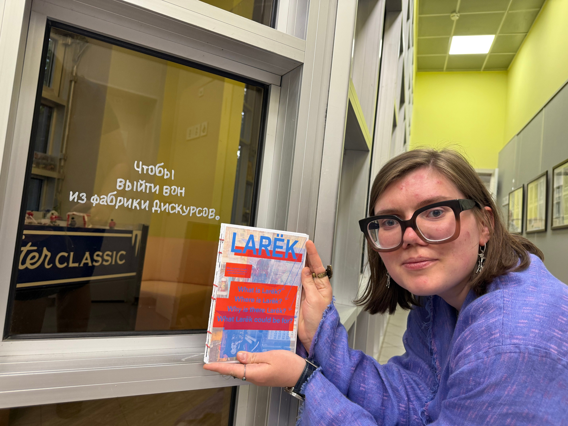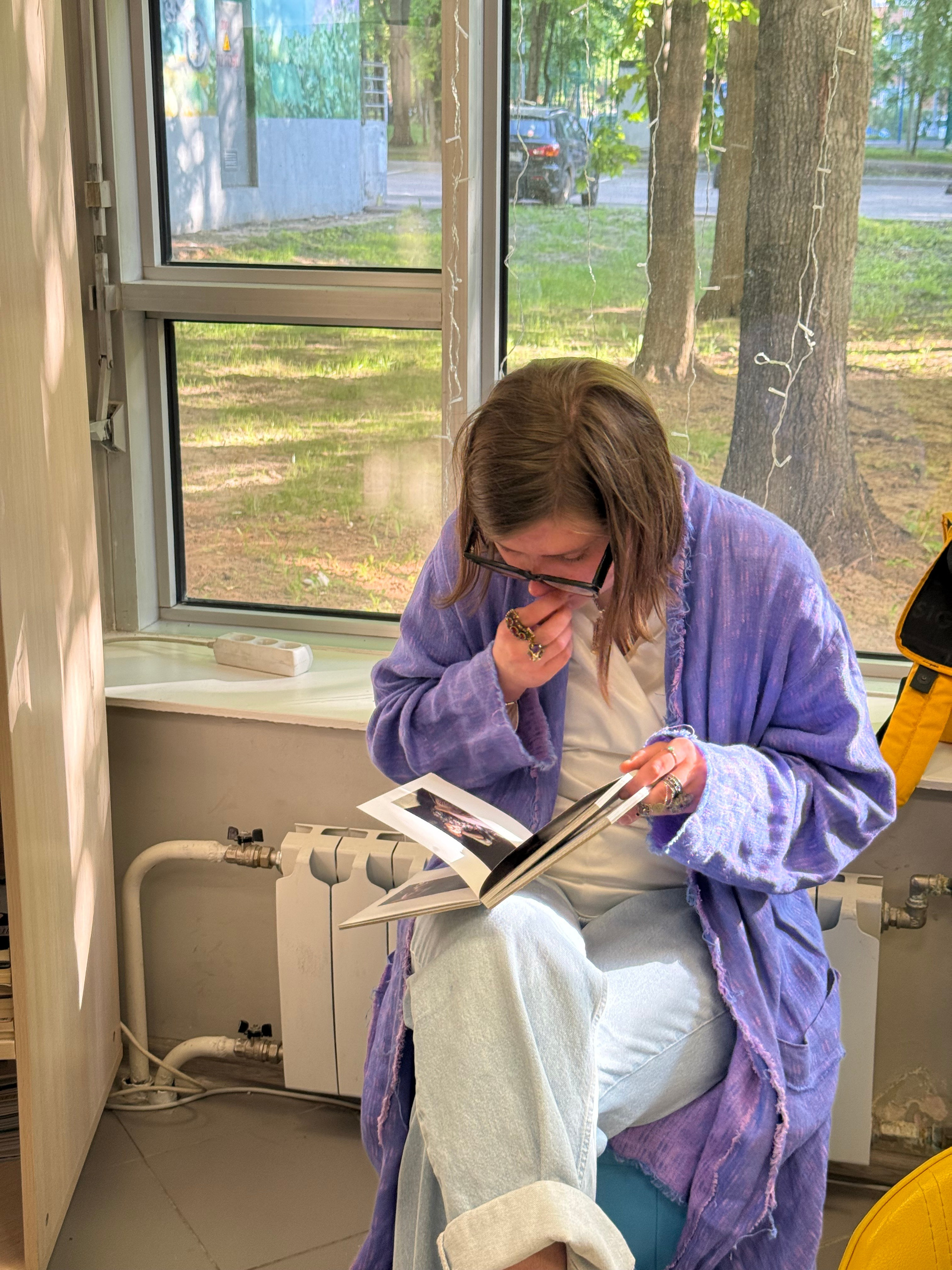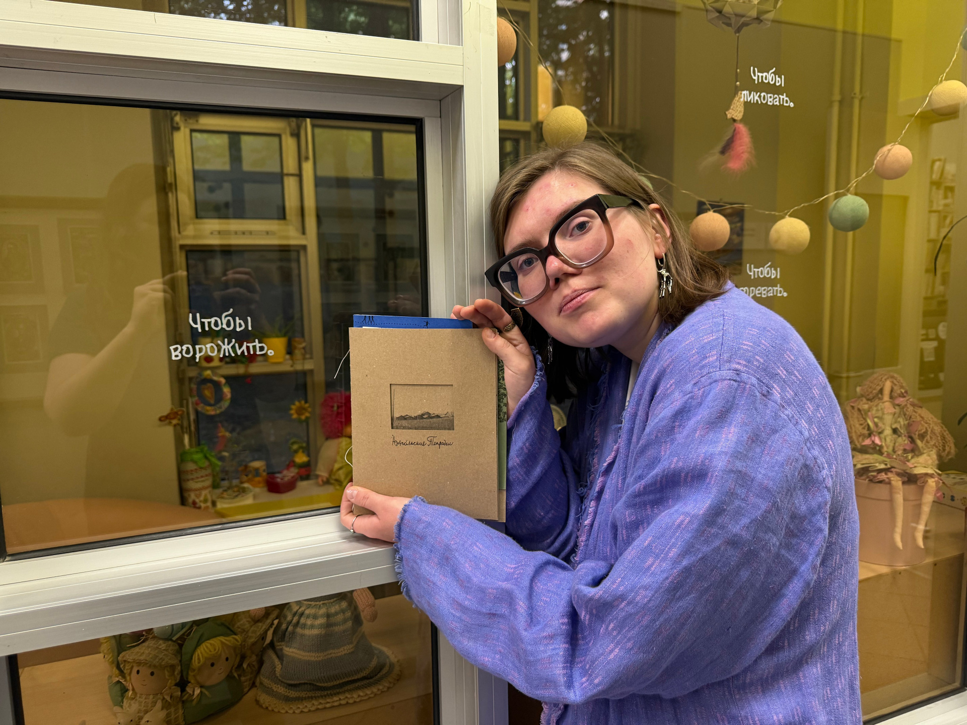 Лера Круглова (Ростов-на-Дону) — художница, куратор, зин-энтузиаст, окончила ИСИ «База» и «Докдокдок», организатор жердёлы’22-23-24, админ телеграм-канала «дзинь».
